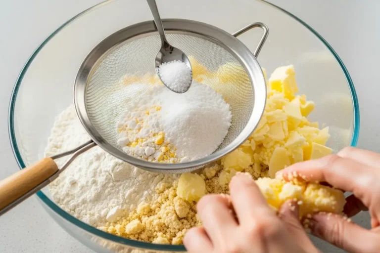 - A combinação de farinha de trigo com amido de milho é essencial para a textura que derrete. E a técnica de misturar com as pontas dos dedos até formar uma “farofinha” é o pulo do gato! Isso “impermeabiliza” a farinha com a manteiga, evitando que o glúten se desenvolva e garantindo um biscoito super quebradiço e delicado.